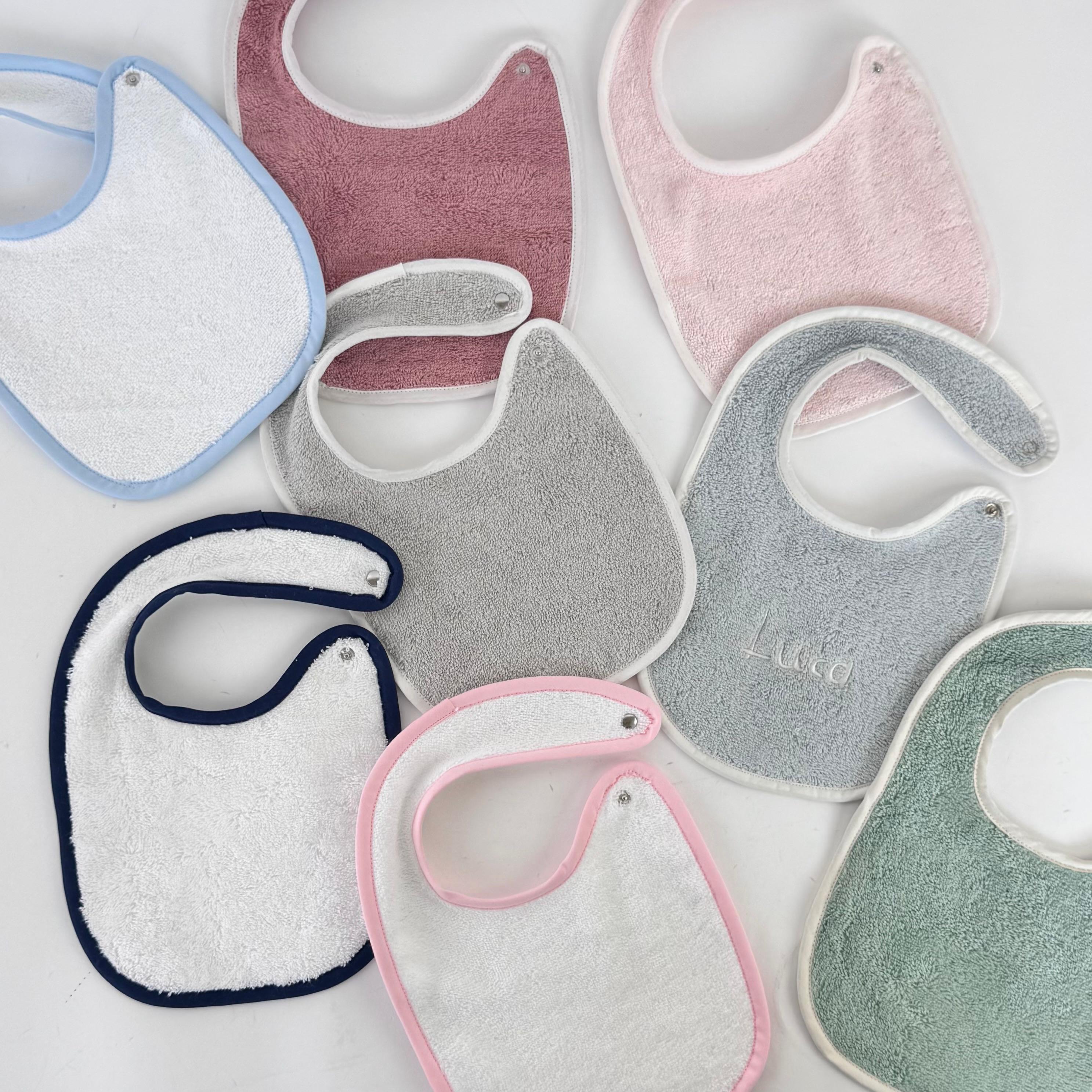 Il bavaglino per neonato può essere personalizzato con il ricamo del nome.