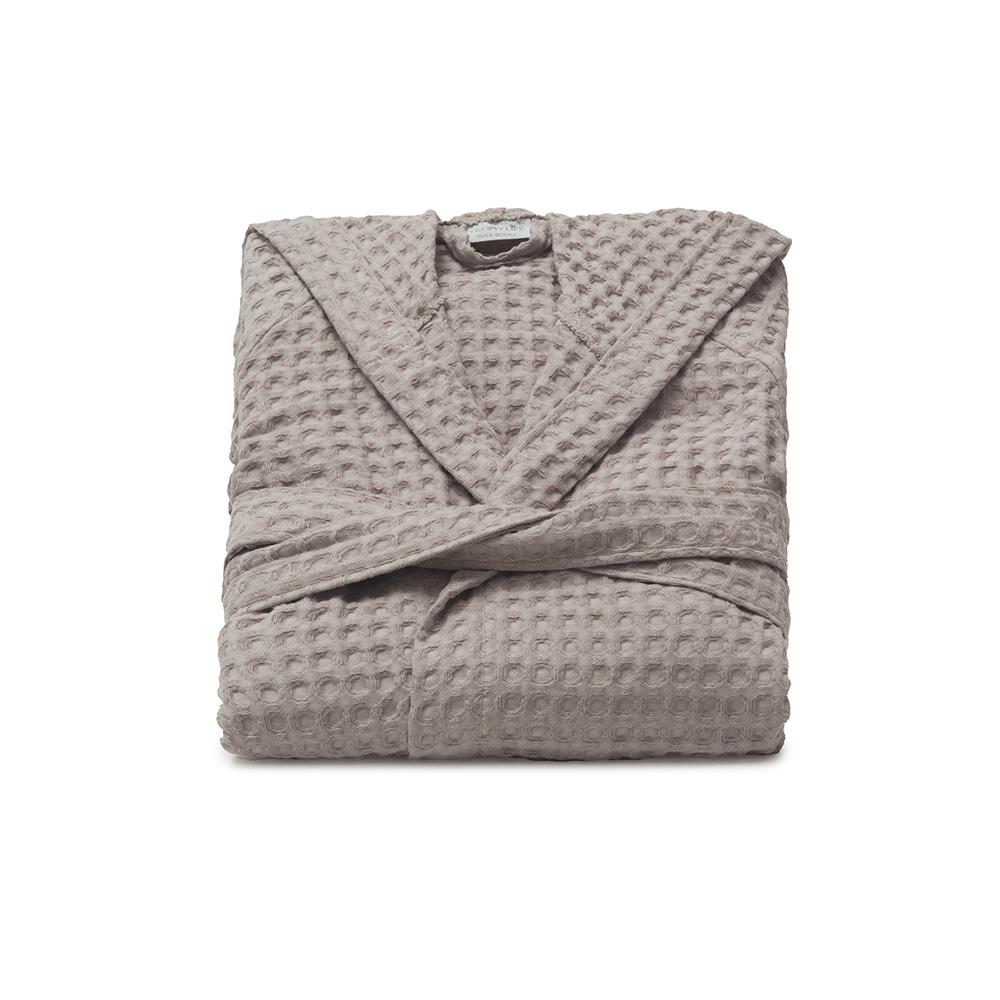Accappatoio in Nido d'ape, morbido e assorbente nel colore salvia, dotato di cappuccio, due tasche laterali e cintura.