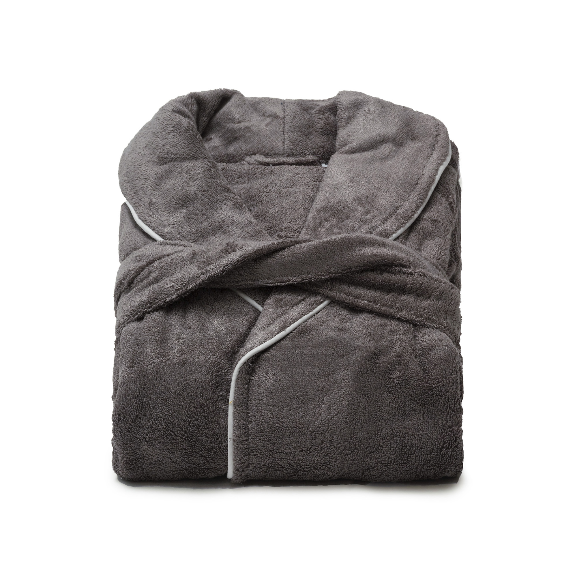 Accappatoio Uomo/Donna realizzato in morbidissima spugna di cotone e Bambù. Si distingue per l’elegante collo a scialle rifinito con la caratteristica codina a contrasto, un prezioso dettaglio che viene ripreso nei polsini e nelle ampie tasche.