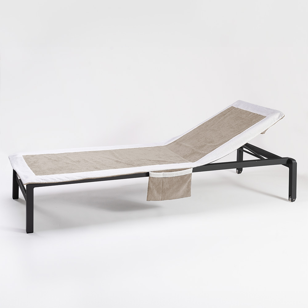 Il design ricercato si distingue per un elegante bordo a cornice in spugna a contrasto e una pratica tasca laterale, perfetta per custodire libri, smartphone, o la tua crema solare, mantenendo i tuoi essenziali sempre a portata di mano e sicuri dalla sabbia.