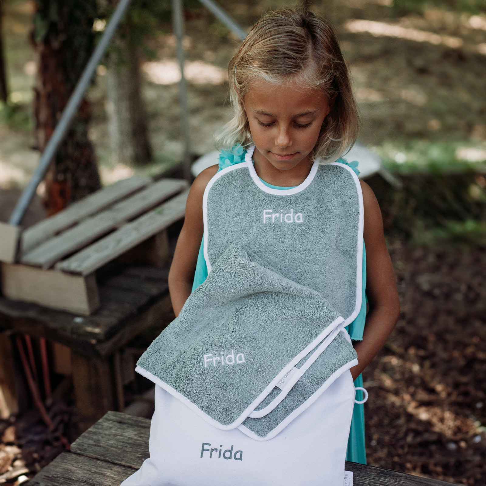 Set Asilo Terry Life Bambù: Bavaglino Elastico, Asciugamano Assorbente e Zainetto Pratico per il Tuo Bambino
